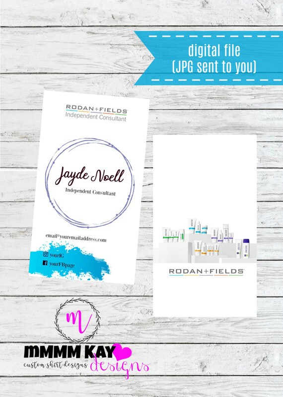 We offer a complete package. This is personalized business card. 5 out of 5 stars. This is the best way for customers to purchase new products and business prospects can be referred to sign up to be an independent consultant for the rodan + fields business where you can earn commissions. Rodan and fields custom business card, love rodan+fields personal marketing, digital or printed, r+f two sided business cards.